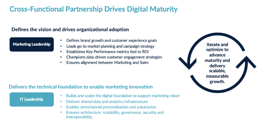 The accelerating pace of digital innovation has driven the need for organizations to transform their marketing strategies into dynamic, data-driven powerhouses capable of shaping customer experiences and driving business success. Yet, achieving this transformation requires more than just cutting-edge technology. Rather, it demands seamless collaboration between marketing and IT teams. The good news is that, by addressing the inherent push-and-pull between these departments and establishing a strong communication framework, it is possible to overcome challenges and achieve sustainable marketing transformation.